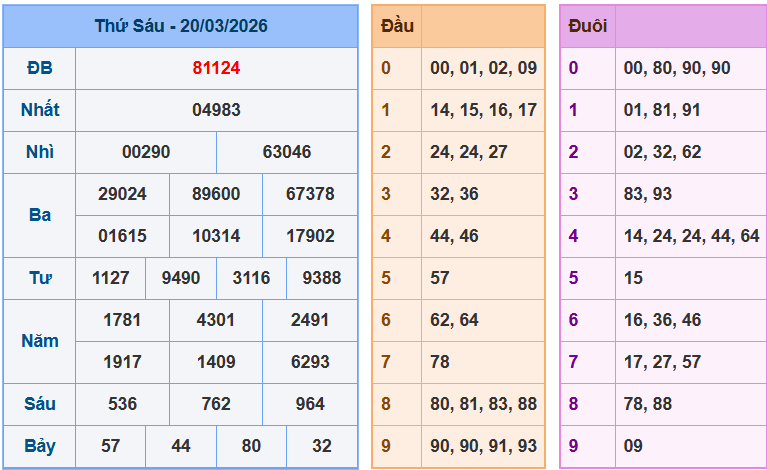 Kết quả soi cầu xổ số miền Bắc ngày 20-03-2026